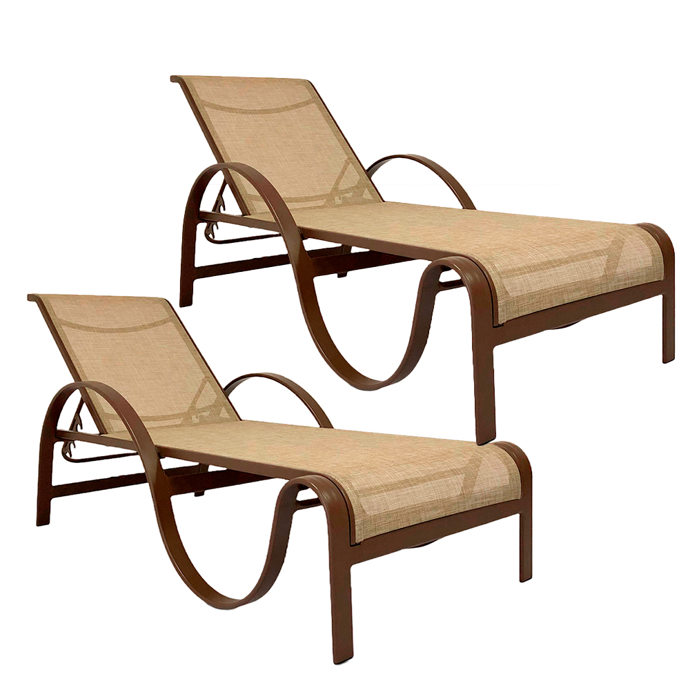 Cadeira espreguiçadeira de piscina em aluminio e tela sling, resistente com regulagem no encosto para até 5 posições.